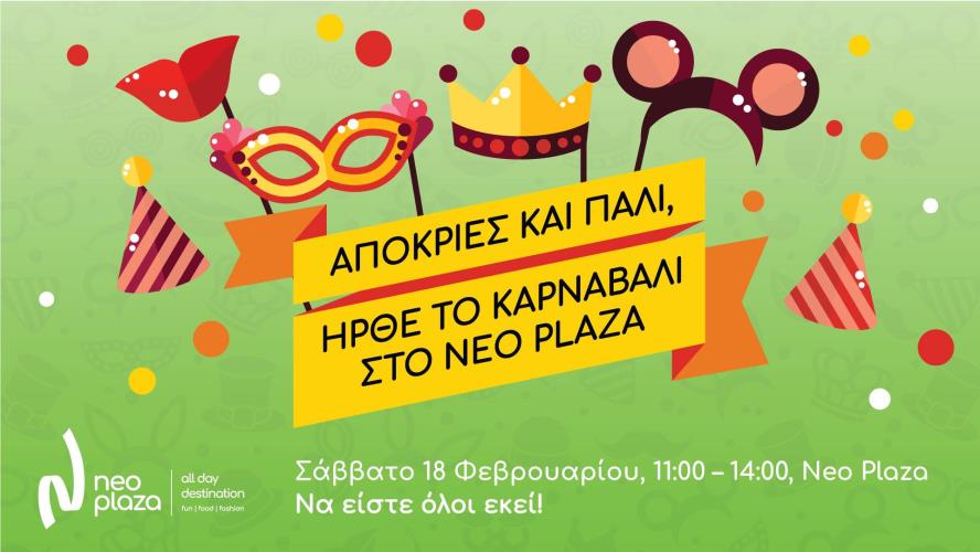 Το Σάββατο 18 Φεβρουαρίου, μικροί και μεγάλοι παρελαύνουν στην πιο ξέφρενη αποκριάτικη γιορτή στο εμπορικό πάρκο Neo Plaza στη Κοκκινοτριμιθιά.