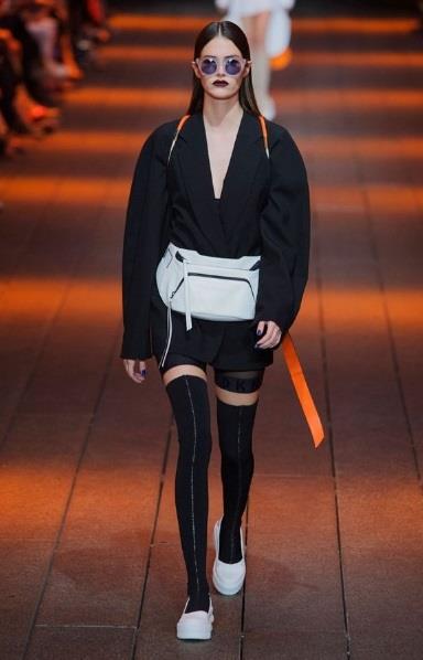 Όσο για τα αξεσουάρ, τα μοντέλα εμφανίστηκαν με μπότες-κάλτσες από λάστιχο καθώς και τσαντάκια μέσης φορεμένα μπροστά ή πίσω, ενισχύοντας την αθλητική πλευρά της συλλογής. Στο τέλος του show, όλα τα μοντέλα εμφανίστηκαν με χαρακτηριστικές DKNY πανομοιότυπες, ολόσωμες φόρμες.