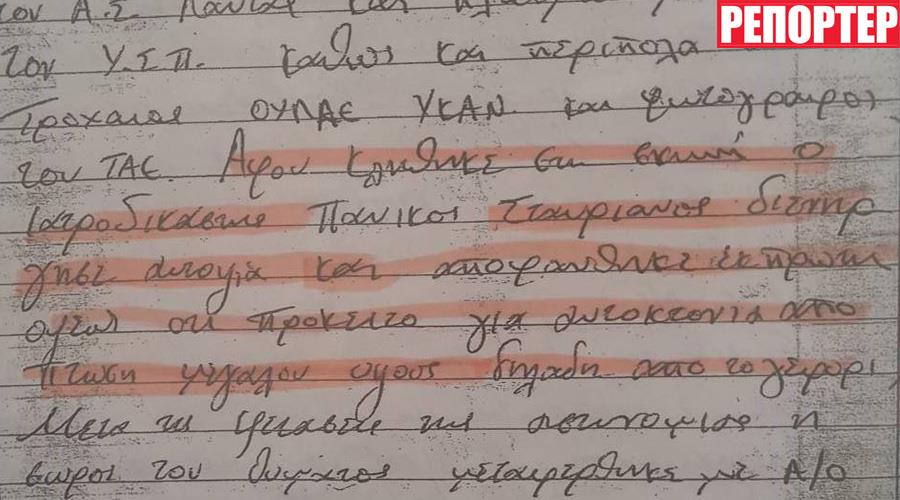 Η κ. Ανδριάνα αποτάθηκε σε ξένους εμπειρογνώμονες και ιατροδικαστές προκειμένου να λάβει διαγνώσεις, σύμφωνα με τις φωτογραφίες της σκηνής, «οι οποίες μιλούν από μόνες τους, ότι πρόκειται για εγκληματική ενέργεια και όχι από πτώση εξ ύψους 30 μέτρων, αφού το σώμα του είναι άθικτο από οποιαδήποτε εξωτερική κάκωση και το στόμα του ήταν γεμάτο άμμο».