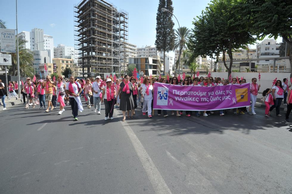 Με ροζ φιγούρες γέμισε η Λεωφόρος Μακαρίου χθες Κυριακή 9 Οκτωβρίου. Γυναίκες αλλά και άντρες συμμετείχαν στην πορεία με τις ροζ φιγούρες, της Europa Donna για στήριξη όλων των γυναικών που πάσχουν από τον καρκίνο του μαστού.