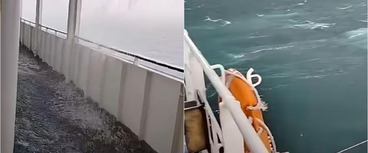 Ένας επιβάτης κατέγραψε μάλιστα σε βίντεο την κακοκαιρία, αποτυπώνοντας τις δραματικές στιγμές εν πλω.