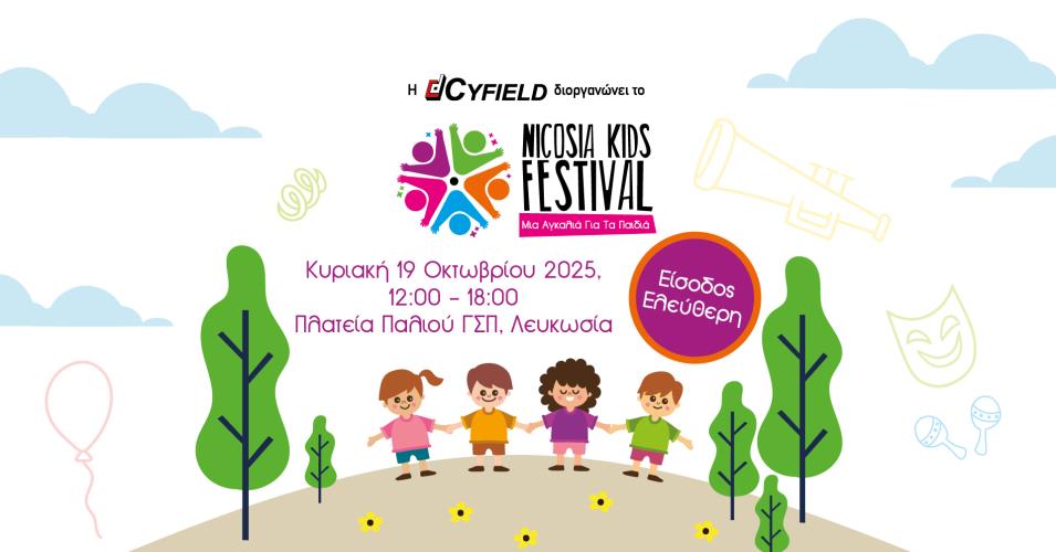 Την Κυριακή 19 Οκτωβρίου, από τις 12 το μεσημέρι μέχρι και τις 6 το απόγευμα, η Πλατεία του Παλιού ΓΣΠ στη Λευκωσία μεταμορφώνεται σε έναν πολύχρωμο κόσμο παιχνιδιού, γνώσης και αλληλεγγύης! Το Nicosia Kids Festival «Μια Αγκαλιά για τα Παιδιά», που διοργανώνει η Cyfield, προσκαλεί μικρούς και μεγάλους σε μια ξεχωριστή μέρα γεμάτη φαντασία, μουσική, παραμύθια και δράση.