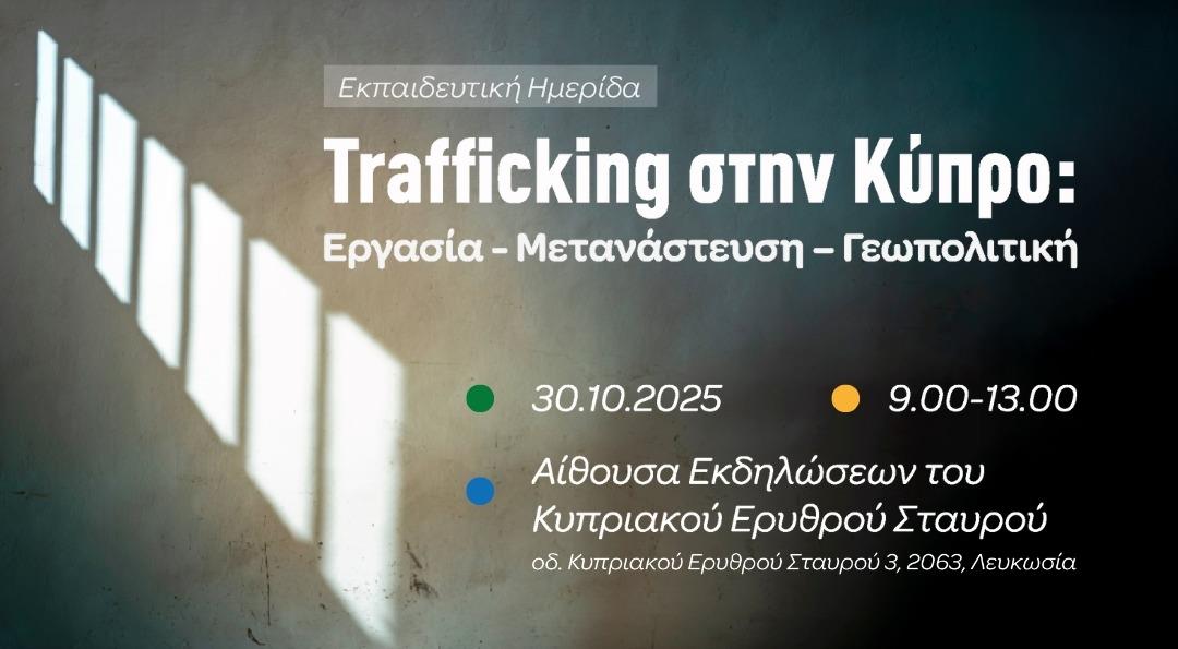 Το Center for Social Innovation-CSI, η Αναπτυξιακή Εταιρεία Λευκωσίας και ο Σύνδεσμος Κοινωνικών Λειτουργών Κύπρου διοργανώνουν την εκπαιδευτική ημερίδα με θέμα : «Trafficking στην Κύπρο: Εργασία - Μετανάστευση - Γεωπολιτική», στις 30.10.2025, 9:00-13:00, στην Αίθουσα Εκδηλώσεων του Κυπριακού Ερυθρού Σταυρού (οδ. Κυπριακού Ερυθρού Σταυρού 3, 2063, Λευκωσία).
