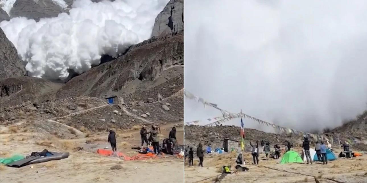 Οι ορειβάτες και οι οδηγοί στο καμπ αρκετά μέτρα πιο κάτω παρακολουθούν πως ένα τείχος από χιόνι κατέβαινε με ορμή προς το μέρος τους. Η χιονοστιβάδα είχε σχηματιστεί σε υψόμετρο περίπου 4.100 μέτρων, στη βόρεια πλευρά του βουνού, στην περιοχή Myagdi του Νεπάλ.