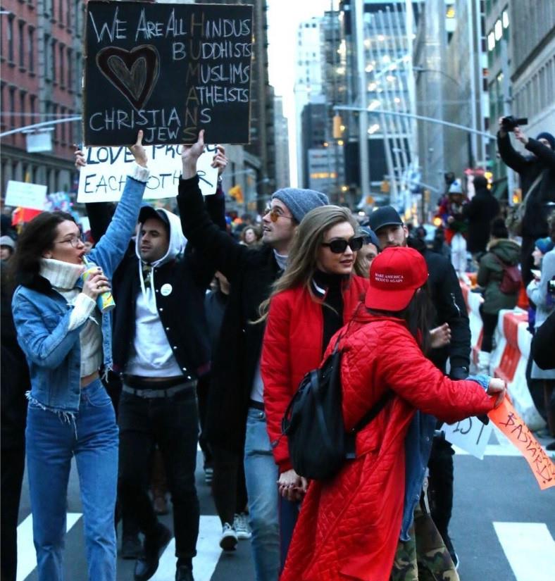 Παράλληλα οι αδελφές Bella και Gigi Hadid βγήκαν στο δρόμο και διαδήλωσαν με πλήθος κόσμου εναντίον του νέου πλανητάρχη!