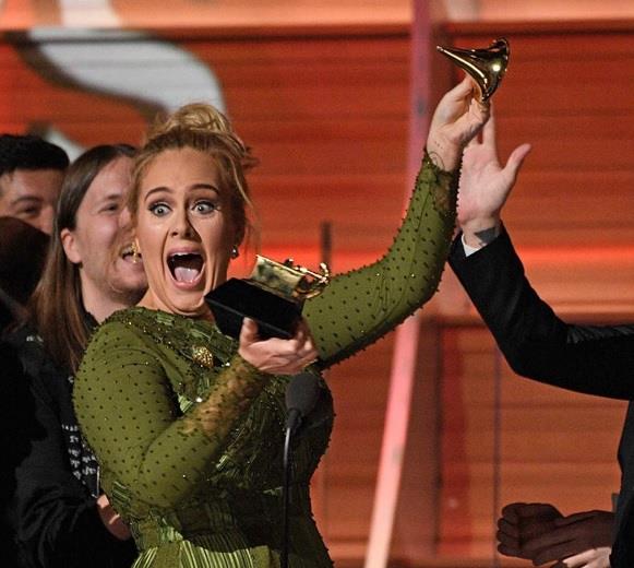 Η αγαπημένη τραγουδίστρια κέρδισε πέντε βραβεία, δηλώνοντας όμως ότι τουλάχιστον ένα από αυτά έπρεπε να πάει στην Beyonce. “Δεν μπορώ να δεχτώ αυτό το βραβείο, η Beyonce το αξίζει περισσότερο”, είπε όταν έγινε γνωστό ότι κέρδισε και το βραβείο για το καλύτερο άλμπουμ της χρονιάς, το "25". Tην ίδια στιγμή μοίρασε το βραβείο που έλαβε και χάρισε το ένα κομμάτι στην Beyonce!