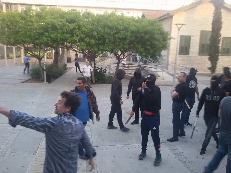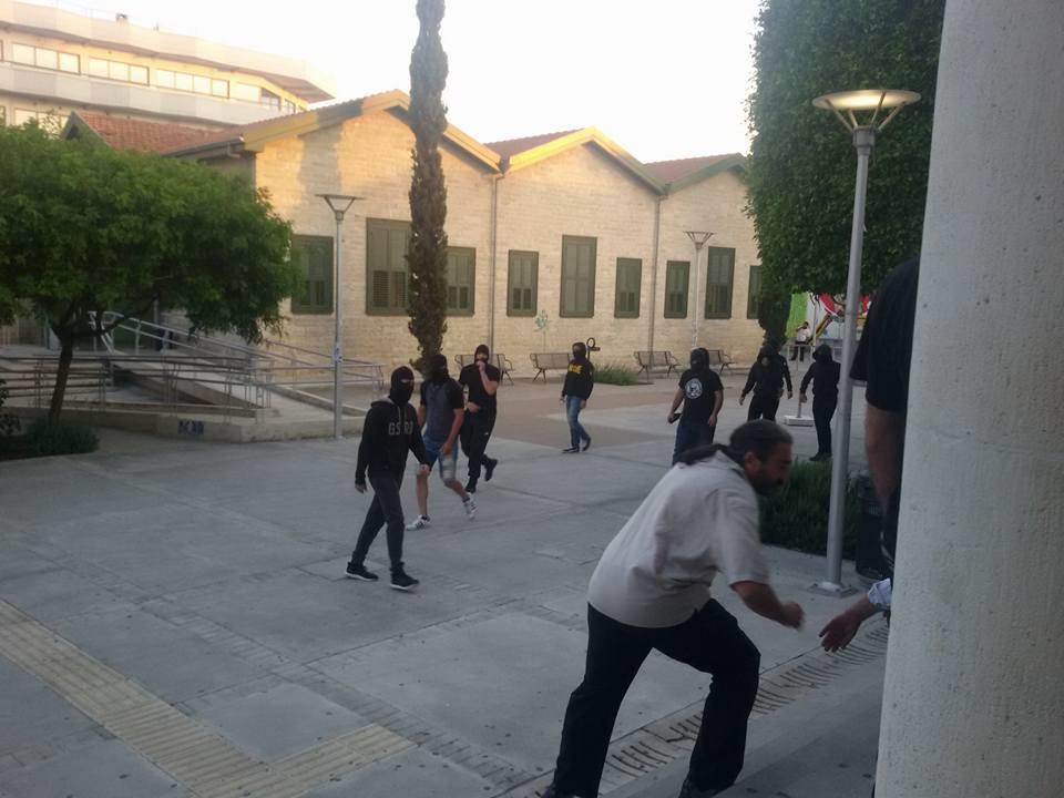 Πρόσωπα με κουκούλες μπούκαραν σε εκδήλωση που λάμβανε χώρα σε αίθουσα του ΤΕΠΑΚ απόψε στη Λεμεσό.