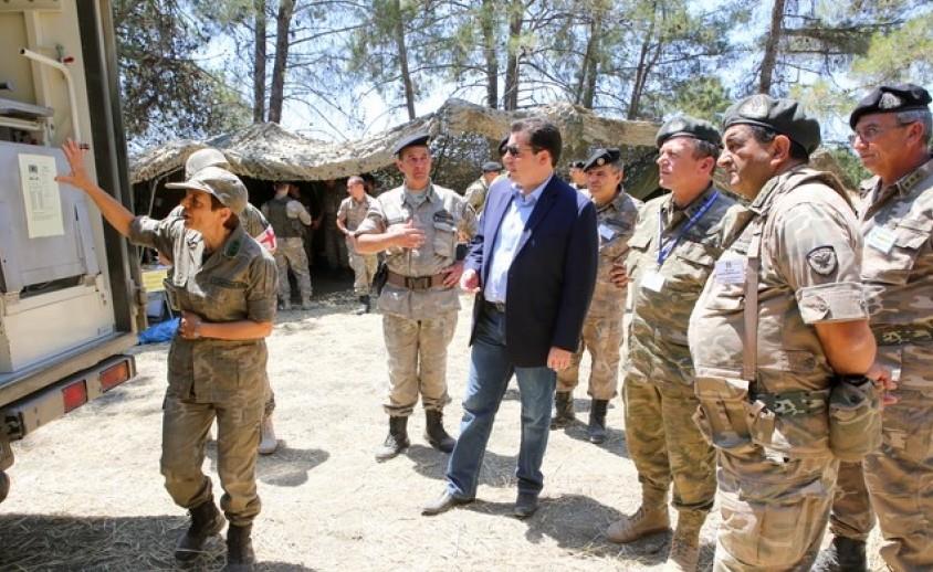 Ο Υπουργός Άμυνας κ. Χριστόφορος Φωκαΐδης, παρακολούθησε δραστηριότητες της άσκησης και διαπίστωσε αφενός τον βαθμό ετοιμότητας της Δύναμης και αφετέρου την πρόοδο προσαρμογής της Εθνικής Φρουράς στο πλαίσιο του προγράμματος της μετεξέλιξής της όπως αποφασίστηκε από το Υπουργικό Συμβούλιο το 2016.