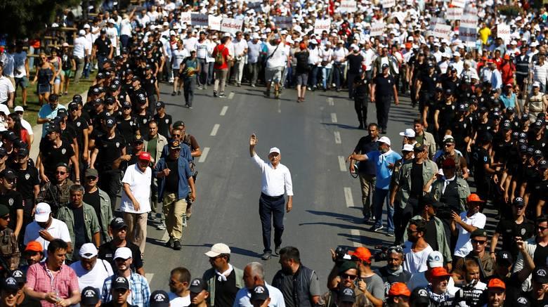Ολοκληρώνεται σήμερα Κυριακή η «Πορεία της Δικαιοσύνης» που διοργάνωσε ο επικεφαλής της τουρκικής αξιωματικής αντιπολίτευσης Κεμάλ Κιλιτσντάρογλου για να διαμαρτυρηθεί για τη φυλάκιση ενός βουλευτή του κόμματός του. Η πορεία που ξεκίνησε στις 15 Ιουνίου αναμένεται να λήξει με την ομιλία του, ενώπιον του συγκεντρωμένου πλήθους μπροστά από τις φυλακές που κρατείται ο βουλευτής.