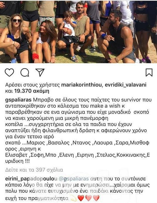 Εγώ ήμουν υπεύθυνη για να φέρω την οργάνωση σε επαφή με τους παίκτες. Μια χαρά είναι οι σχέσεις μας με την Ειρήνη, τις προάλλες είμασταν και στο μαγαζί του Κώστα, δεν μπορώ να καταλάβω για ποιο λόγο έγινε αυτό το πράγμα! Αν είχε θέμα, θα καλούσα μόνο τους φίλους μου, έλειπαν και ο Χούτος και ο Χρανιώτης, δεν είχα λόγο να μην καλέσω την Ειρήνη!» ξέσπασε η πρώην παίκτρια του Survivor. Η εκπομπή επικοινώνησε και με την υπεύθυνη του Make a Wish, η οποία επεσήμανε τη δυσκολία του εγχειρήματος.