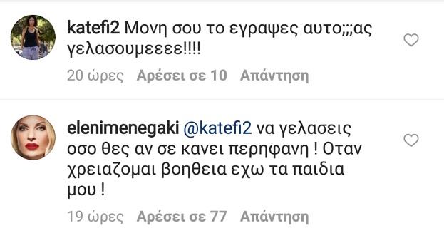 Λίγη ώρα αργότερα, όταν διαδικτυακή της φίλη έγραψε «μόνη σου το έγραψες αυτό; Ας γελάσουμε!», η παρουσιάστρια απάντησε ξανά! «Να γελάσεις όσο θες αν σε κάνει περήφανη. Όταν χρειάζομαι βοήθεια, έχω τα παιδιά μου», ανέφερε.