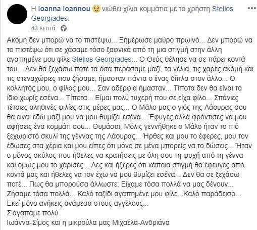 Την είδηση του θανάτου του έκανε γνωστή η makeup artist Ιωάννα Ιωάννου.