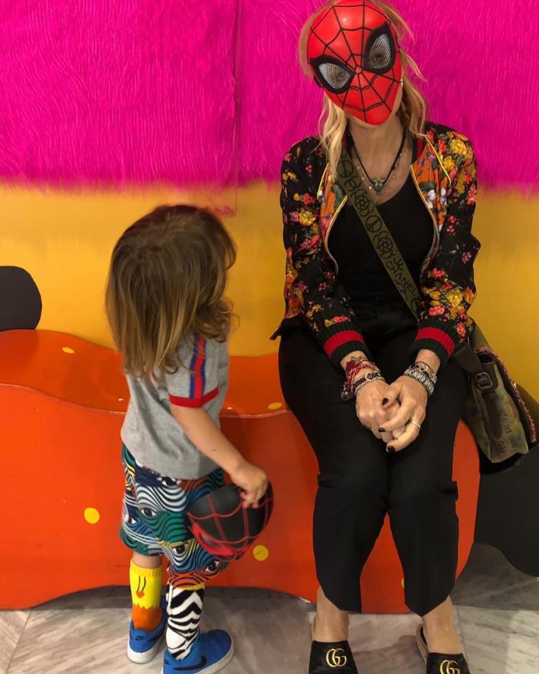 Αυτή τη φορά η … σούπερ γιαγιά Άννα, έγινε spider γιαγιά και πόζαρε με στυλ στην κάμερα με τον εγγονό της να την κοιτάει όπως βλέπεις με μεγάλο ενδιαφέρον! «Spider giagia on duty» έγραψε η δημοφιλής τραγουδίστρια κάτω από την φωτογραφία της!