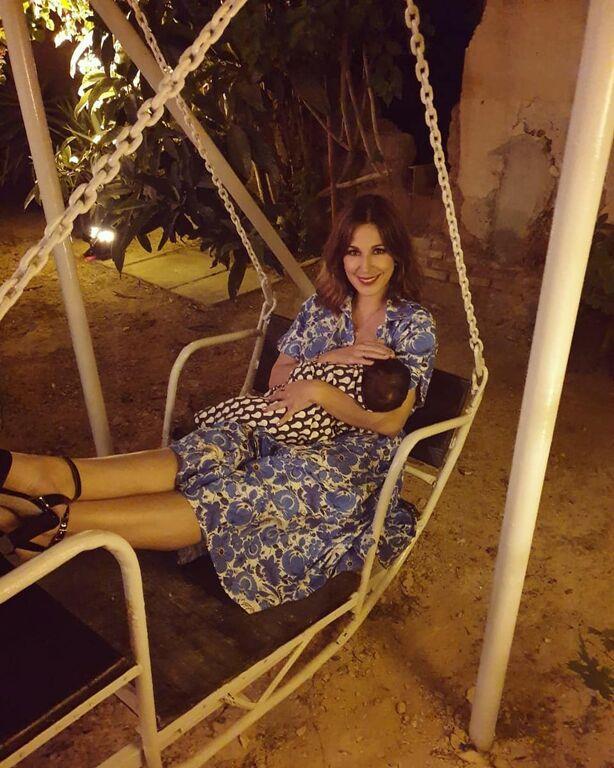Η Κατερίνα Παπουτσάκη θηλάζει τον γιο της σε κούνια: "τρελο φαγοπότι στον γαμο της φιλης μας της @polyxenies στην Κύπρο #εμειςοιδυοπαμεπακετο#πικουνακιείσαιτρέλα #breastfeeding #breastfeedingmybaby" ήταν το σχόλιό της δίπλα στη φωτογραφία.