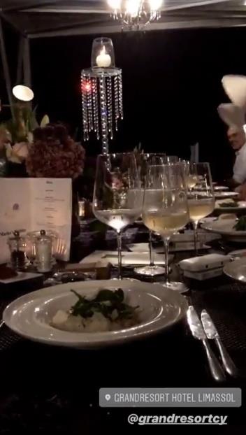 Όλοι μαζί απόλαυσαν το δείπνο τους με θέα την θάλασσα και την πανσέληνο ενώ η διακόσμηση ήταν ιδιαίτερα εντυπωσιακή και σε ρομαντικούς τόνους.