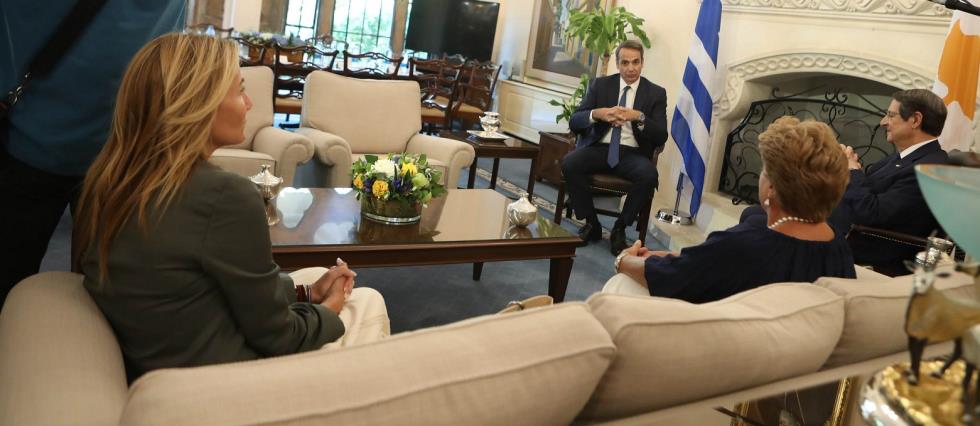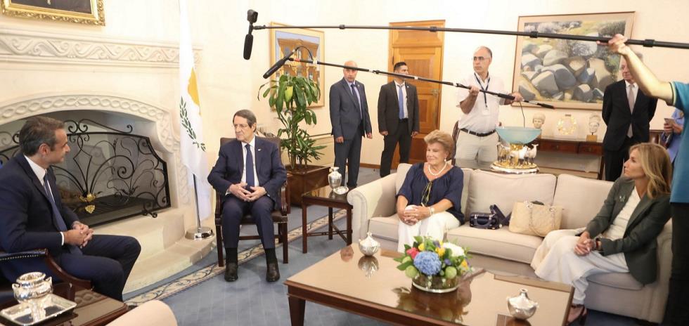 Παρούσες στη συνάντηση του Κυριάκου Μητσοτάκη με τον Νίκο Αναστασιάδη ήταν οι σύζυγοί τους Μαρέβα Μητσοτάκη και Αντρη Αναστασιάδη. Οι δύο κυρίες κάθονταν στον καναπέ και παρακολουθούσαν τη συζήτηση που εξελισσόταν μπροστά στις κάμερες.