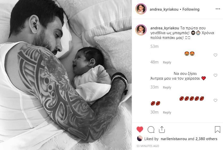 "Τα πρώτα σου γενέθλια ως μπαμπάς! 🧔🏻👶🏻 Χρόνια πολλά παπάκι μας!" έγραψε στη λεζάντα της φωτογραφίας η Άντρεα Κυριάκου και οι καρδούλες έπεσαν βροχή.