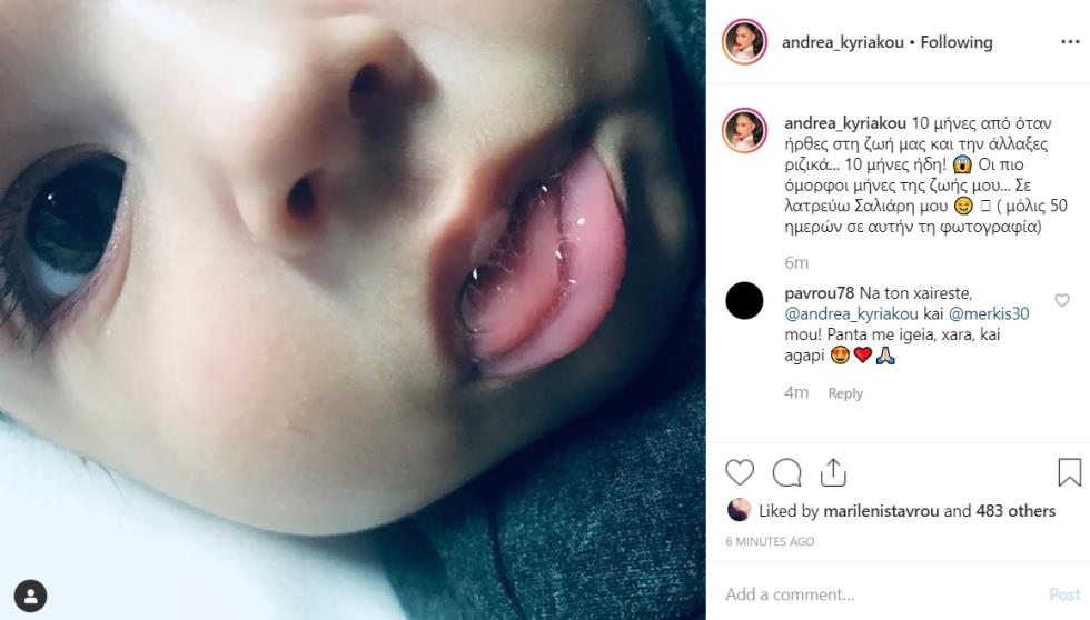 Μια φωτογραφία με το προσωπάκι του γιου της ανέβασε στον προσωπικό της λογαριασμό στο instagram η Άντρεα Κυριάκου.