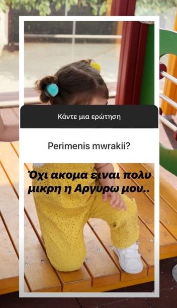 Αλλά και αν περιμένει μωράκι, με την Άντρη να δηλώνει "όχι ακόμα είναι πολύ μικρή η Αρυγρώ μου...".