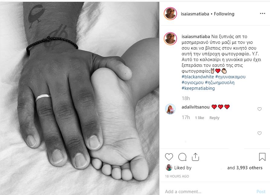 Ένας τρισευτυχισμένος πατέρας είναι εδώ και αρκετούς μήνες ο Ησαΐας Ματιάμπαο οποίος παρά το γεγονός ότι διατηρεί χαμηλούς τόνους, δεν διστάζει να μοιράζεται κατά καιρούς τρυφερά στιγμιότυπα με τη σύζυγο και τον γιο του.