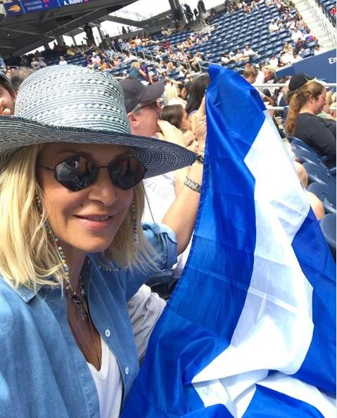 Η Κύπρια τραγουδίστρια που έχει δηλώσει πολλές φορές τον θαυμασμό της για τον Στέφανο Τσιτσιπά, πήγε να παρακολουθήσει από κοντά τον αγώνα του νεαρού πρωταθλητή στο US Open και θέλησε να δείξει παράλληλα και την αγάπη της για την Ελλάδα.