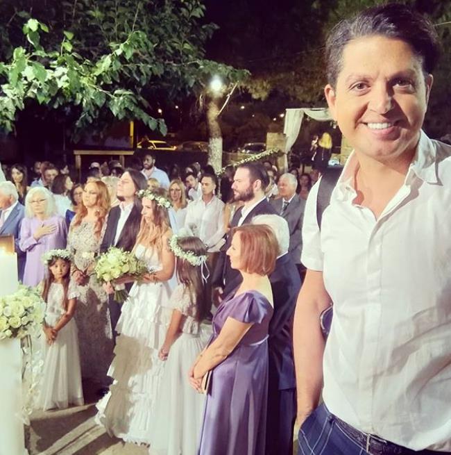 Το μυστήριο πραγματοποιήθηκε στο Πόρτο Ράφτη, με κουμπάρους τους δύο καλούς του φίλους Έλενα Γεωργανά και Γιώργο Γιαννόπουλο.