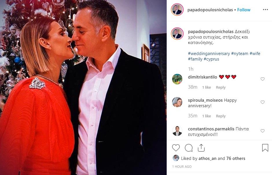 Την επέτειο του γάμου τους γιορτάζουν σήμερα ο Νικόλας Παπαδόπουλος και η Γιώτα Παπαδοπούλου.