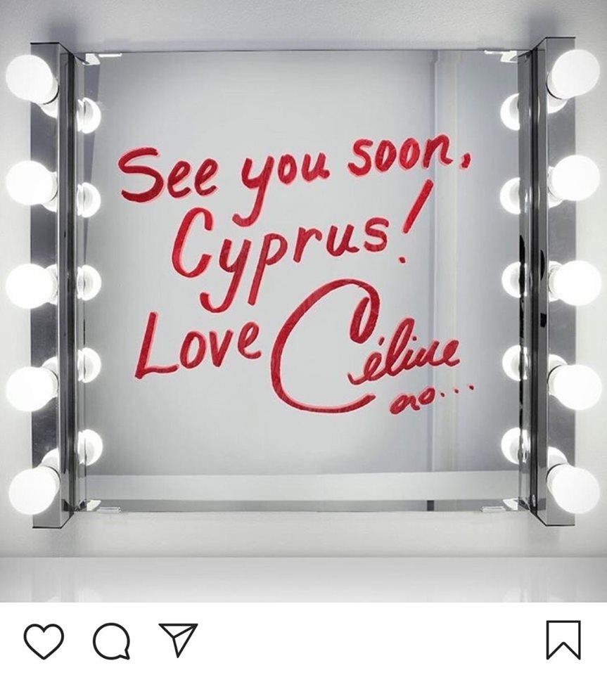 Το Σάββατο 21 Σεπτεμβρίου, το instagram γέμισε με μια φωτογραφία στην οποία η Celine Dion υπογράφει το μήνυμα "See you soon Cyprus! Love Celine" δηλαδή, "Θα τα πούμε σύντομα Κύπρος! Με αγάπη Celine".