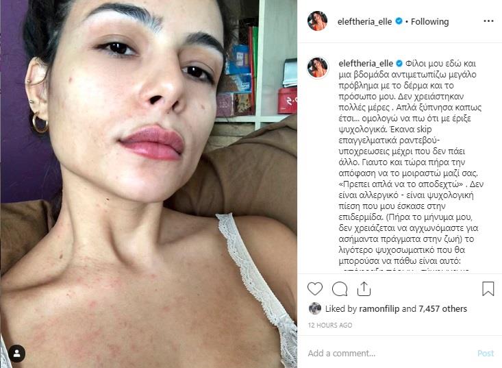 Η Κύπρια τραγουδίστρια ανέβασε μια φωτογραφία του εαυτού της στον προσωπικό λογαριασμό της στο instagrama και δεν δίστασε να αποκαλύψει ότι έχει γεμίσει με σημάδια και ακμή, απόρροια ψυχοσωματικού στρες.
