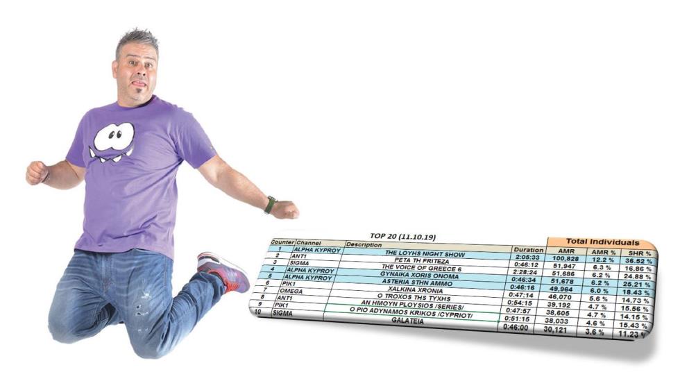 TOP OF THE TOP Τι και εάν απέναντι του παίζουν παραγωγές πολλών εκατομμυρίων… η εκπομπή ΛΟΥΗΣ Night Show του ALPHA, απέδειξε ότι και αυτή τη σεζόν θα είναι πρωταγωνιστής στον πίνακα της AGB.