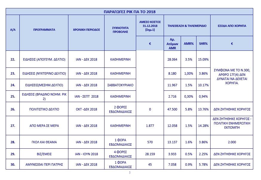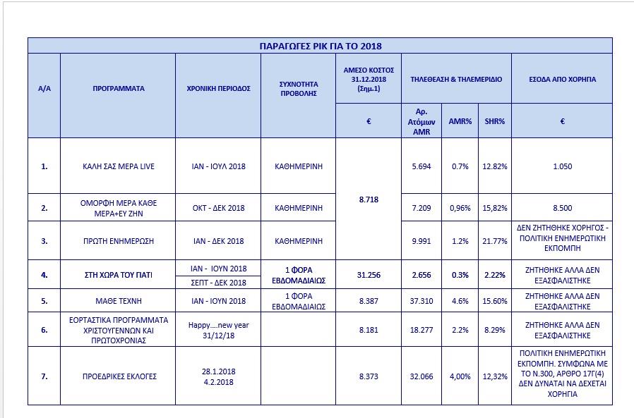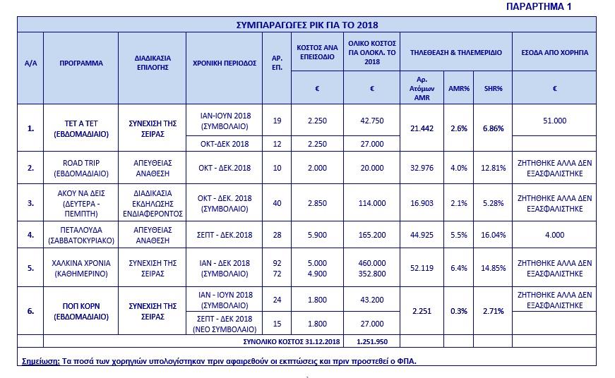 Τόσα στοίχισε η κάθε παραγωγή του ΡΙΚ για το 2018!
