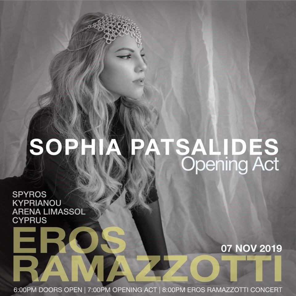 H Σοφία Πατσαλίδου είναι η καλλιτέχνης η οποία θα «ανοίξει» με την υπέροχη φωνή της τη συναυλία του Eros Ramazzotti στην Κύπρο αυτή την εβδομάδα!