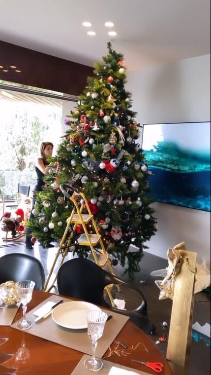 Η επιτυχημένη φωτογράφος και ο Κύπριος επιχειρηματίας κάλεσαν σπίτι τους, τους κουμπάρους της, Χριστίνα Μπόμπα και Σάκη Τανιμανίδη, τους καλύτερους της φίλους αλλά και τους φίλους των παιδιών της και όλοι μαζί στόλισαν το χριστουγεννιάτικο δέντρο!