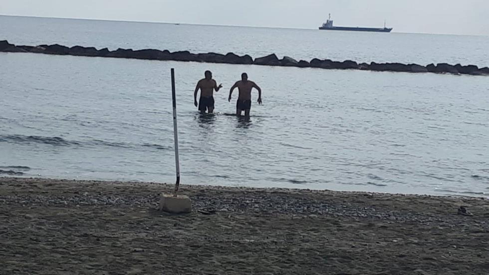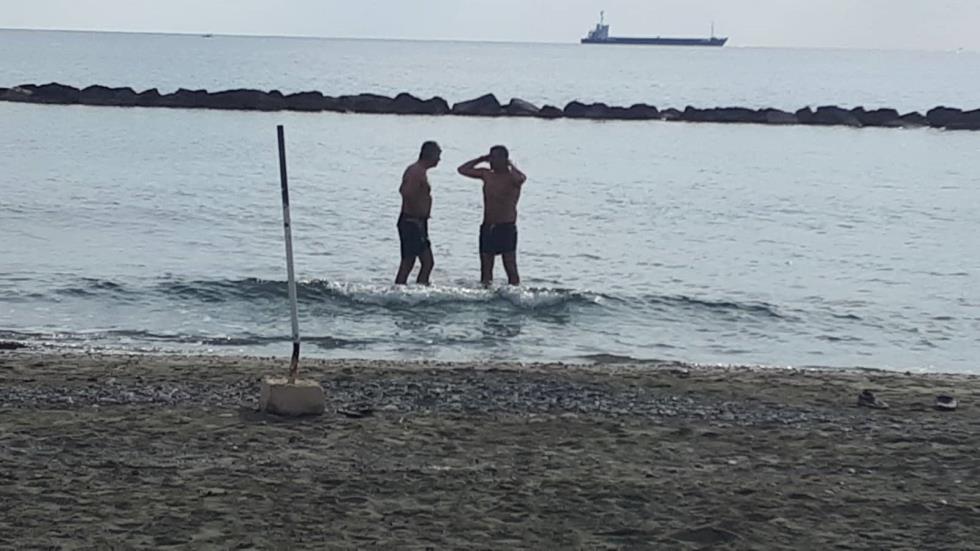 Ο λόγος για το Λουκά Φουρλά, τον οποίο εντοπίσαμε να απολαμβάνει το θαλάσσιο μπάνιο του στη Λεμεσό με φίλο του.