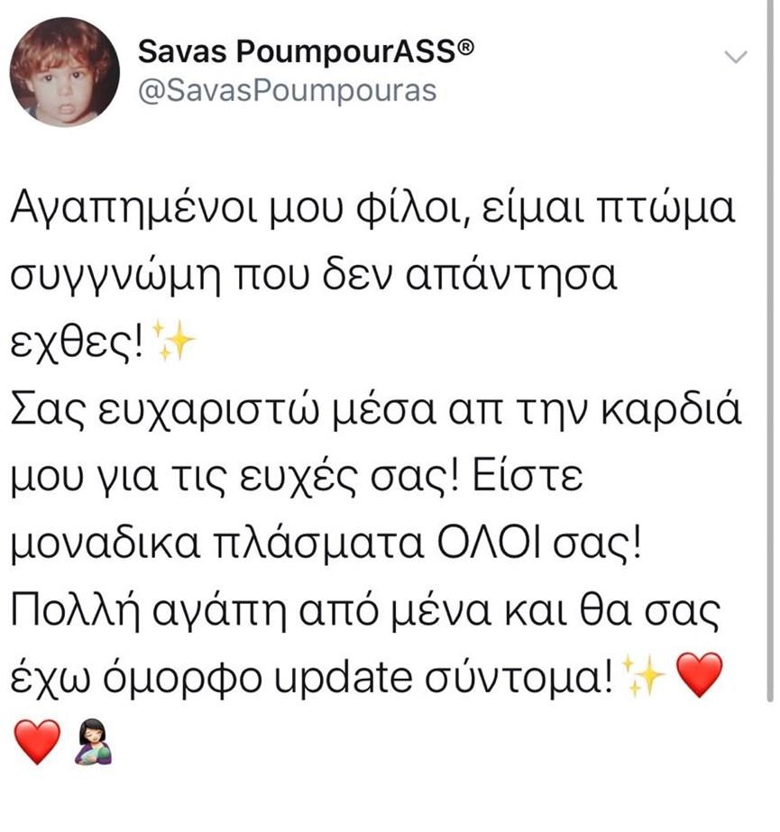 O Σάββας έγινε μπαμπάς σε ένα υγιέστατο κοριτσάκι!