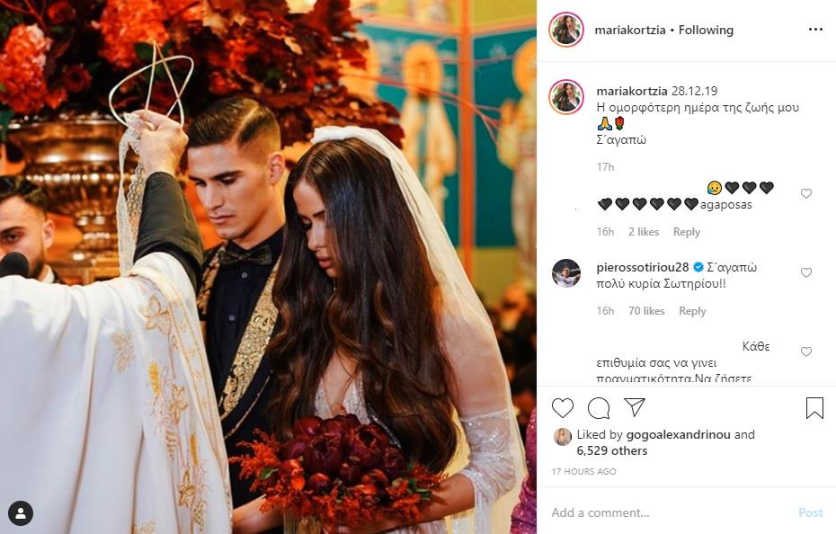 Ο γάμος τους ήταν όλα όσα το γνωστό μοντέλο και ο γνωστός ποδοσφαιριστής ονειρεύτηκαν, με την Μαρία Κορτζιά να κάνει την πρώτη της ανάρτηση μετά την μέρα του γάμου με ένα γλυκό μήνυμα προς τον σύντροφο της.