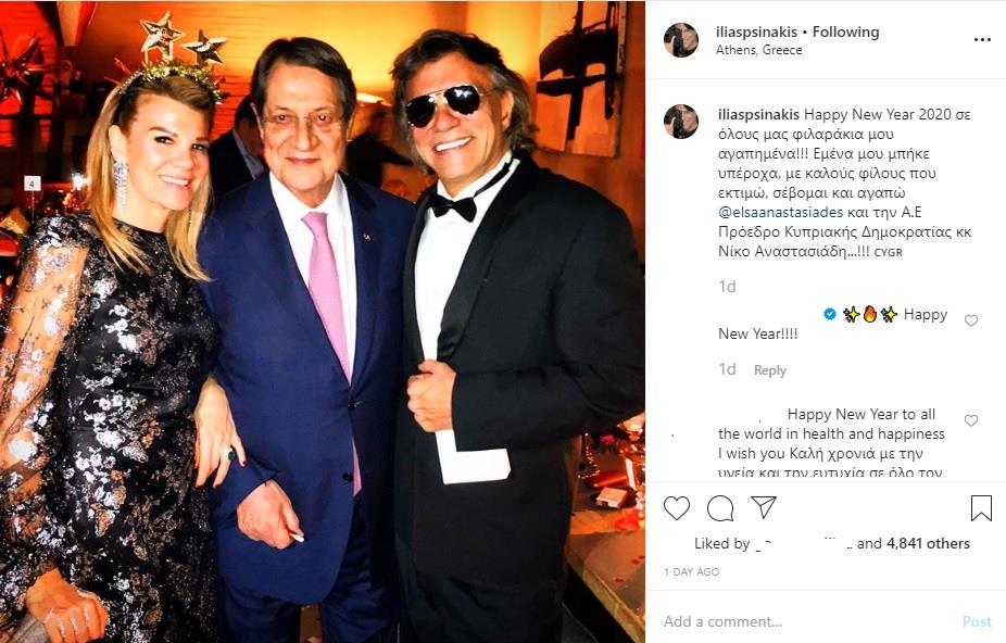 Έτσι δεν έχασε την ευκαιρία να φωτογραφηθεί με τον ΠτΔ και την κόρη του Έλσα Αναστασιάδη, αναφέροντας στην λεζάντα της φωτογραφίας "Happy New Year 2020 σε όλους μας φιλαράκια μου αγαπημένα!!! Εμένα μου μπήκε υπέροχα, με καλούς φίλους που εκτιμώ, σέβομαι και αγαπώ @elsaanastasiades και την Α.Ε Πρόεδρο Κυπριακής Δημοκρατίας κκ Νίκο Αναστασιάδη...!!!"