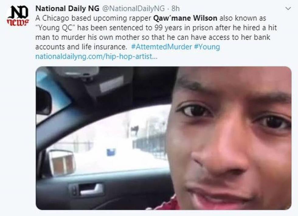 Ο 30χρονος Qaw'mane Wilson, ο οποίος είναι γνωστός με το όνομα Young QC, έβαλε πληρωμένο δολοφόνο να σκοτώσει την μητέρα του Yolanda Holmes το 2012.