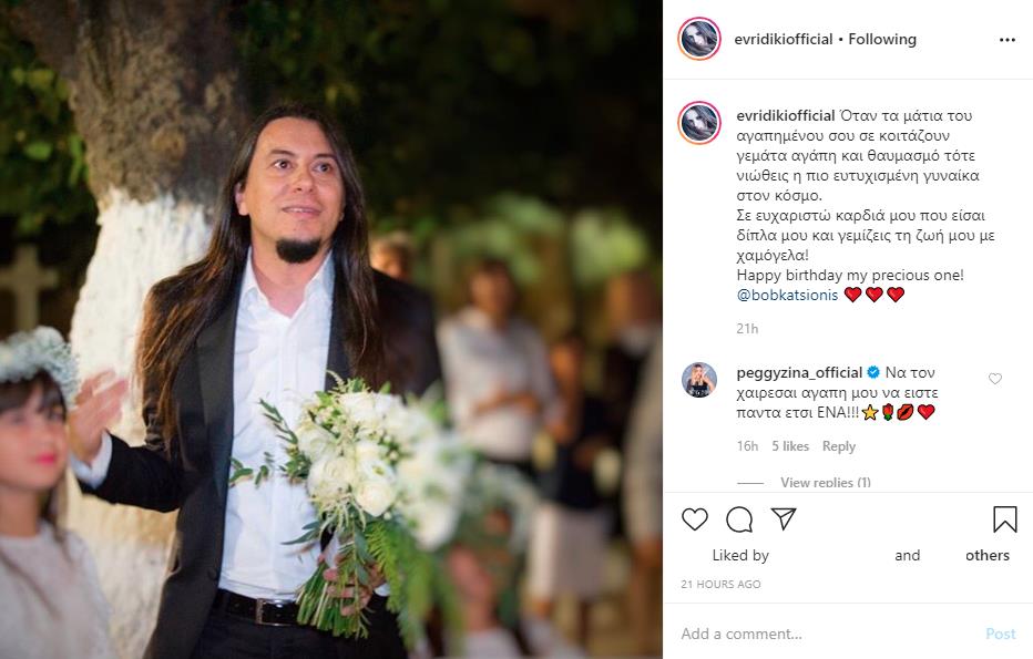 Και η Ευρυδίκη δεν έμεινε πίσω έκανε μια τρυφερή ανάρτηση στο προφίλ της για τον καλό της με την λεζάντα: Όταν τα μάτια του αγαπημένου σου σε κοιτάζουν γεμάτα αγάπη και θαυμασμό τότε νιώθεις η πιο ευτυχισμένη γυναίκα στον κόσμο.