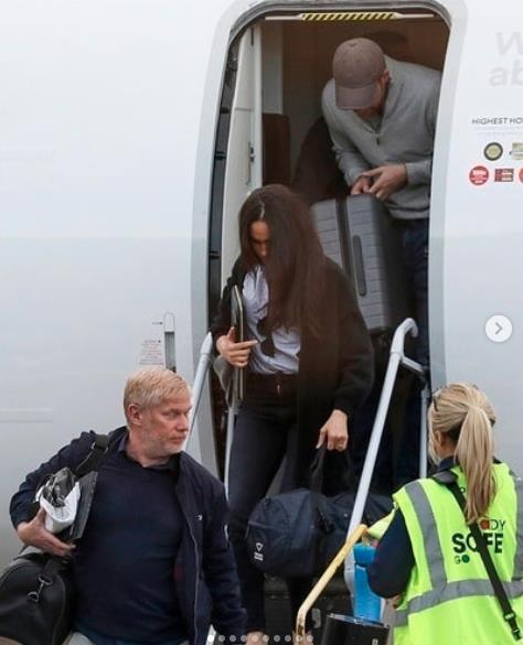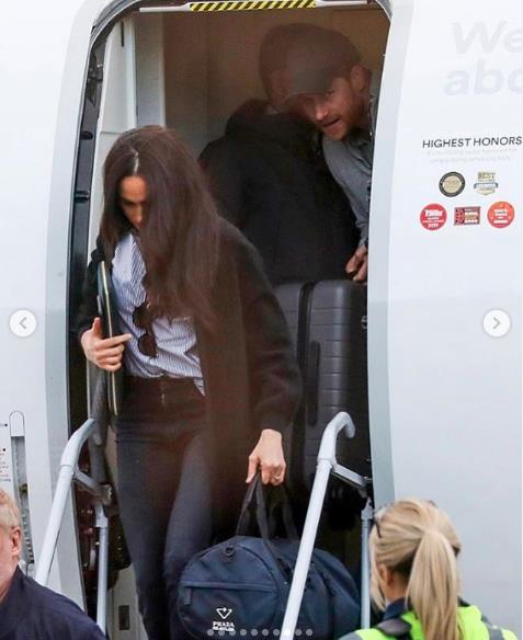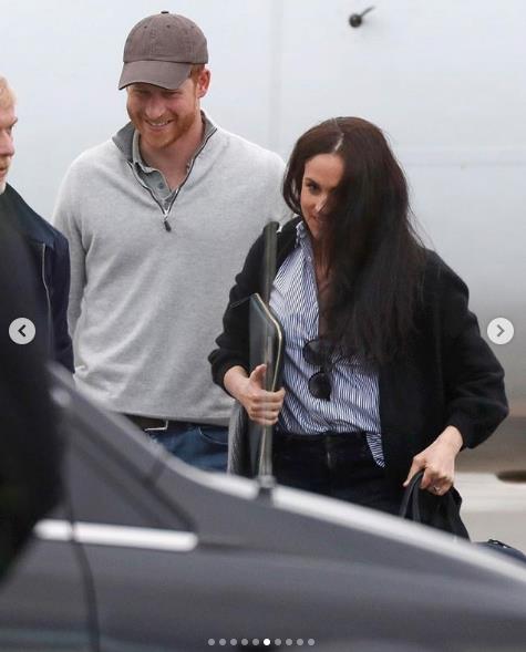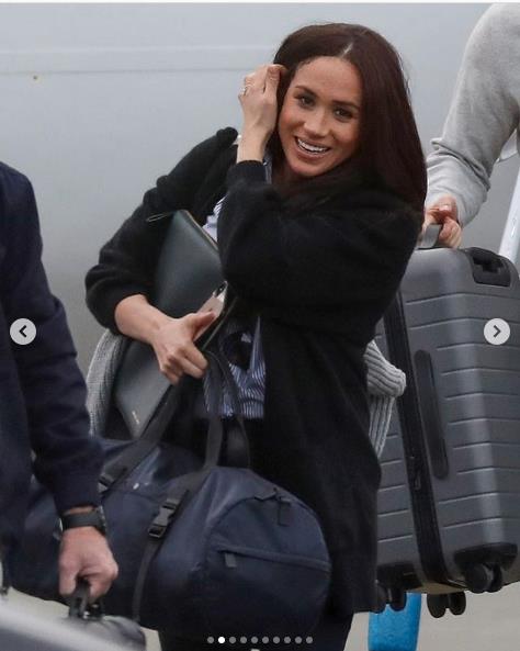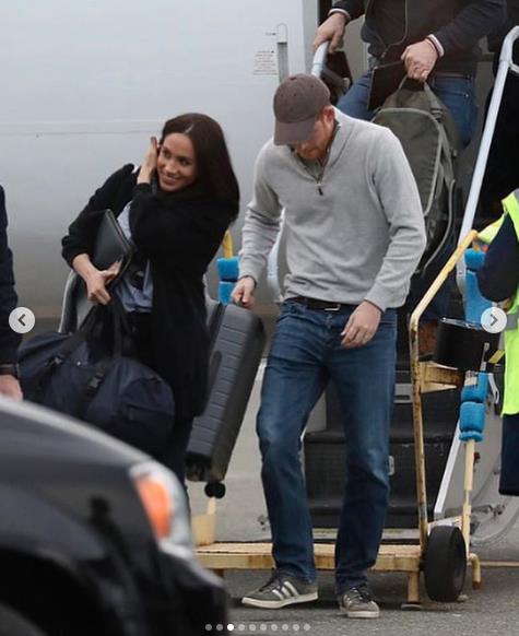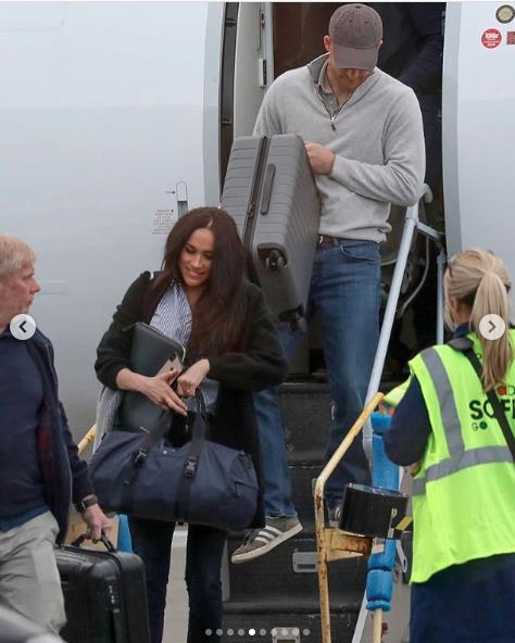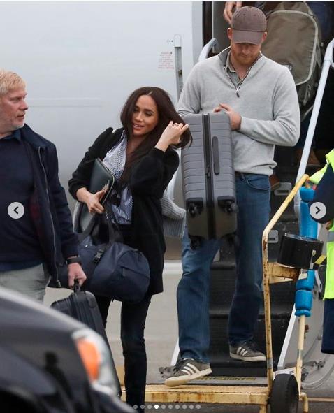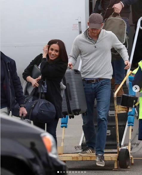 Στις εικόνες που δημοσίευσε αποκλειστικά η DailyMail.com φαίνεται το βασιλικό ζεύγος να είναι ιδιαίτερα ευδιάθετο την ώρα που κατεβαίνει από το αεροπλάνο κρατώντας τις βαλίτσες τους σαν… κοινοί θνητοί.