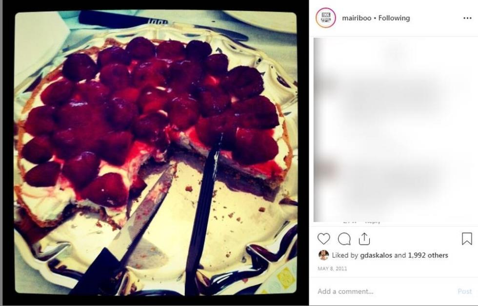 Η Μαίρη Συνατσάκη έκανε λογαριασμό στο instagram στις 8 Μαϊου και το πρώτο της post ήταν ένα cheesecake
