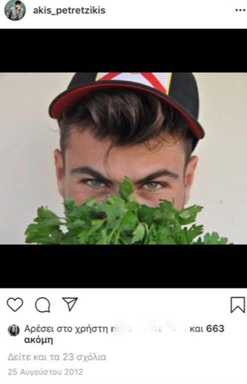Ο Άκης Πετρετζίκης άνοιξε λογαριασμό στο instagram στις 25 Αυγούστου του 2012. H φωτογραφία όπως βλέπετε έχει ένα στοιχείο μαγειρικής που δεν είναι άλλο από τον μαϊντανό