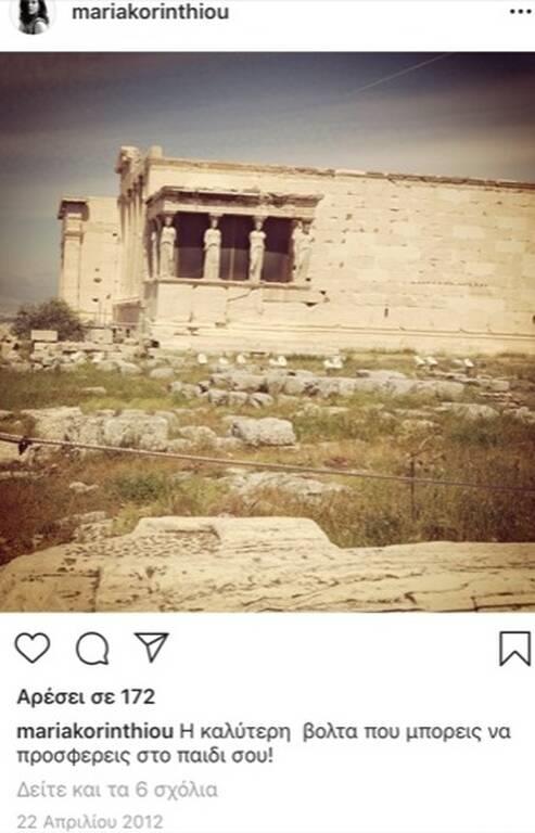 Αρχαιολογικό χώρο επέλεξε και η Μαρία Κορινθίου για το πρώτο της post στο instagram στις 22 Απριλίου του 2012