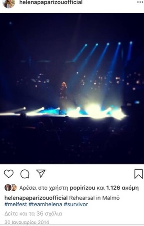 Η Έλενα Παπαρίζου στις 30 Ιανουαρίου του 2014 έκανε την πρώτη της ανάρτηση στο instagram όπου δημοσίευσε φωτογραφία της από την πίστα