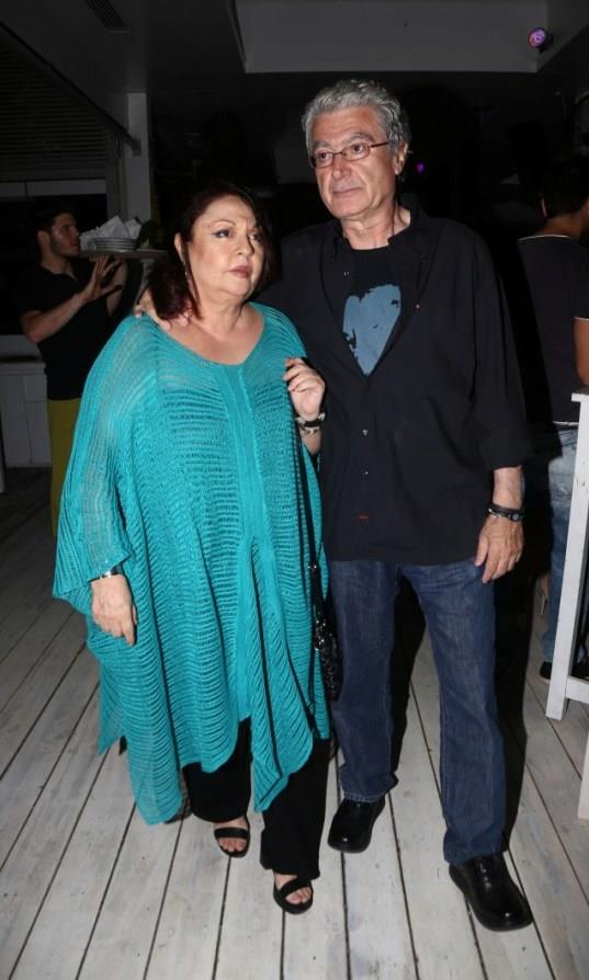Ο φωτογραφικός φακός απαθανάτισε την ηθοποιό με τον Ρήγα Αξελό στην πρεμιέρα της παράστασης «Φεγγάρι από χαρτί» στο θέατρο Rex.