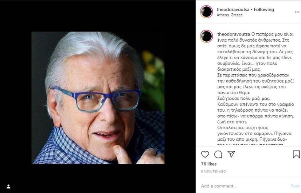 Η κόρη του η Θεοδώρα Βουτσά με μία ανάρτησή της στο instagram σήμερα, Πέμπτη, 27 Φεβρουαρίου ραγίζει καρδιές.