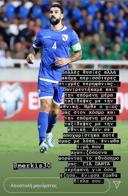 Η Άντρεα Κυριάκου αποχαιρέτησε και αυτή με τον τρόπο της, τον σύζυγο και πατέρα του παιδιού της, Γιώργο Μερική από την Εθνική Κύπρου.