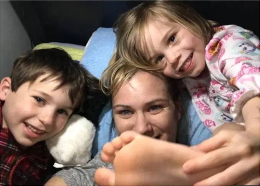 Η 40χρονη Μέιβ Κένεντι με τον γιο και την κόρη της