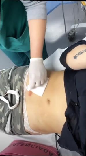 Η ίδια έπαθε έγκαυμα λίγο πιο κάτω από τον αφαλό και στο εν λόγω βίντεο έλεγε: «Πονάω, πονάω».