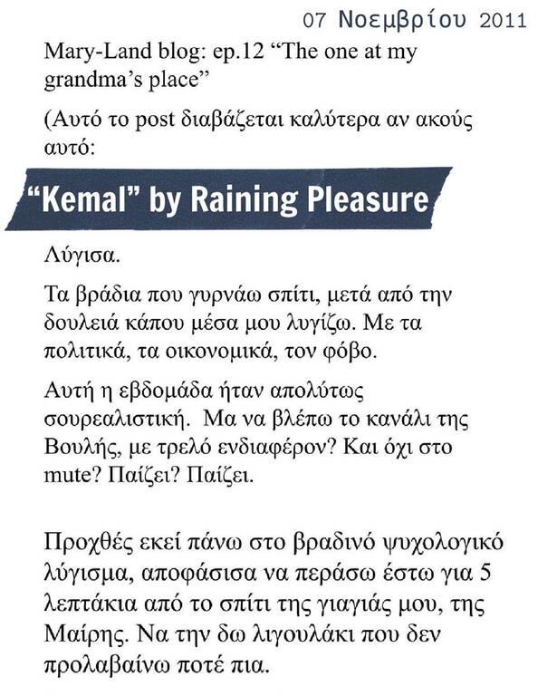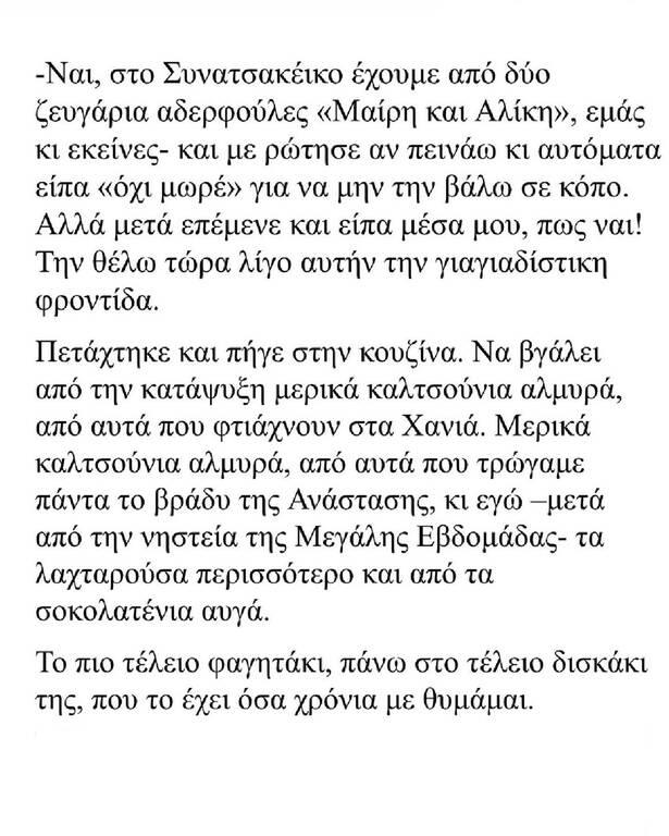 ... Από την Τρίτη ζω σε ένα σύμπαν γεμάτο αναμνήσεις, καλοκαίρια στην Σαρωνίδα, πικ νικ και ταβερνάκια, χειμώνες μπροστά στην σόμπα στην Καλλιθέα, παραστάσεις που τους κάναμε στην πυλωτή...